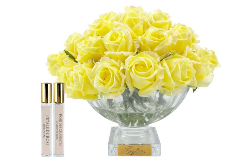 Включен с вашия естествен щрих, Centrepiece Rose Bud Bouquet съдържа две бутилки от 10 мл ароматен парфюм, които можете да напръскате директно върху розите, за да освежите и подсилите аромата.