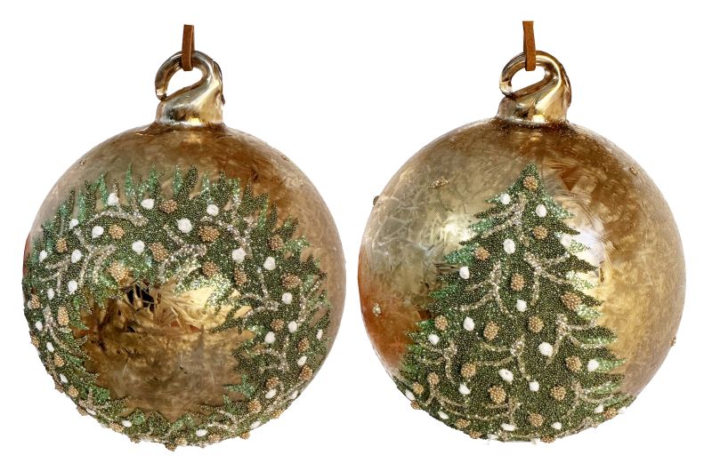 КОЛЕДНА ДЕКОРАЦИЯ - СТЪКЛЕНА ТОПКА АНТИЧНО ЗЛАТО С МЪНИСТА