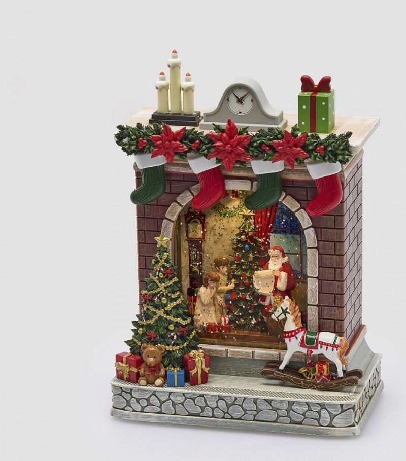 ДЕКОРАЦИЯ ДЯДО КОЛЕДА ПРЕД КАМИНА МУЗИКА+ФИЛМ+LED