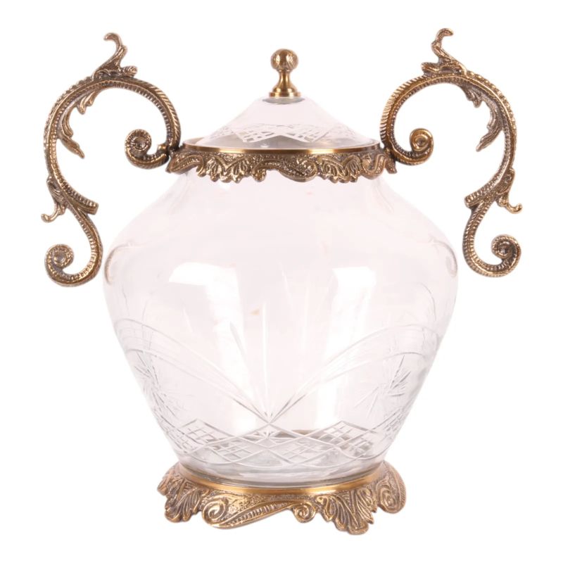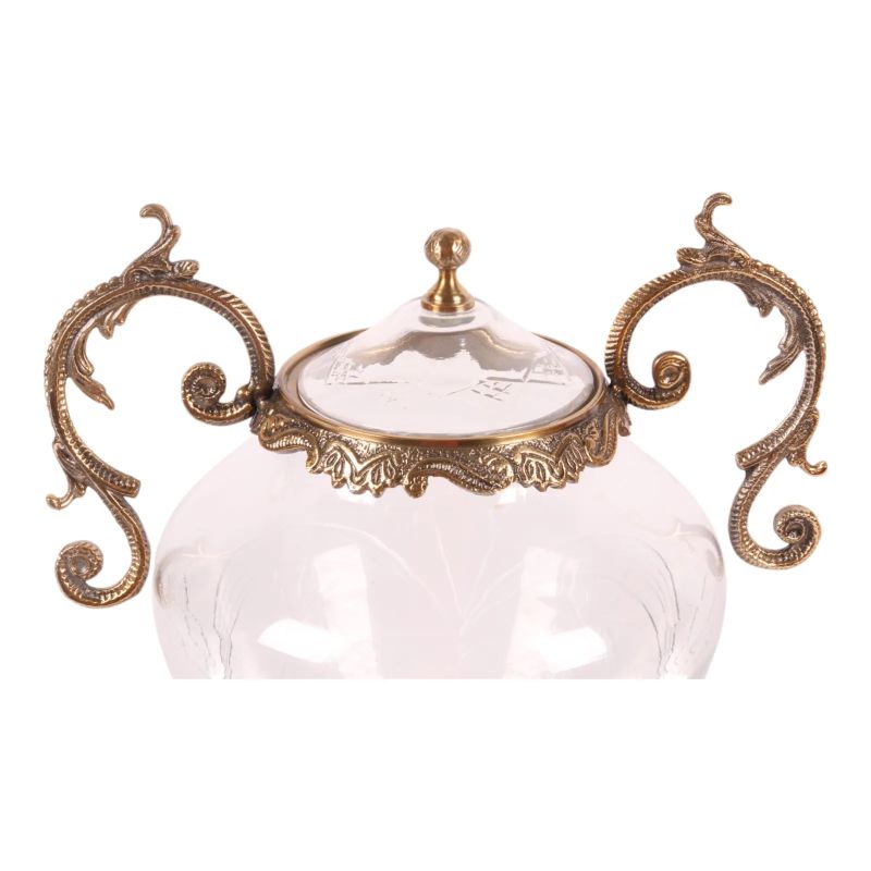 *Тази златна ваза, изработена от стъкло и алуминий, е шедьовър на елегантността. Стъклото, с изисканото си покритие, е допълнено от грациозни дръжки с уникална форма, които придават на класическия дизайн вечна красота.